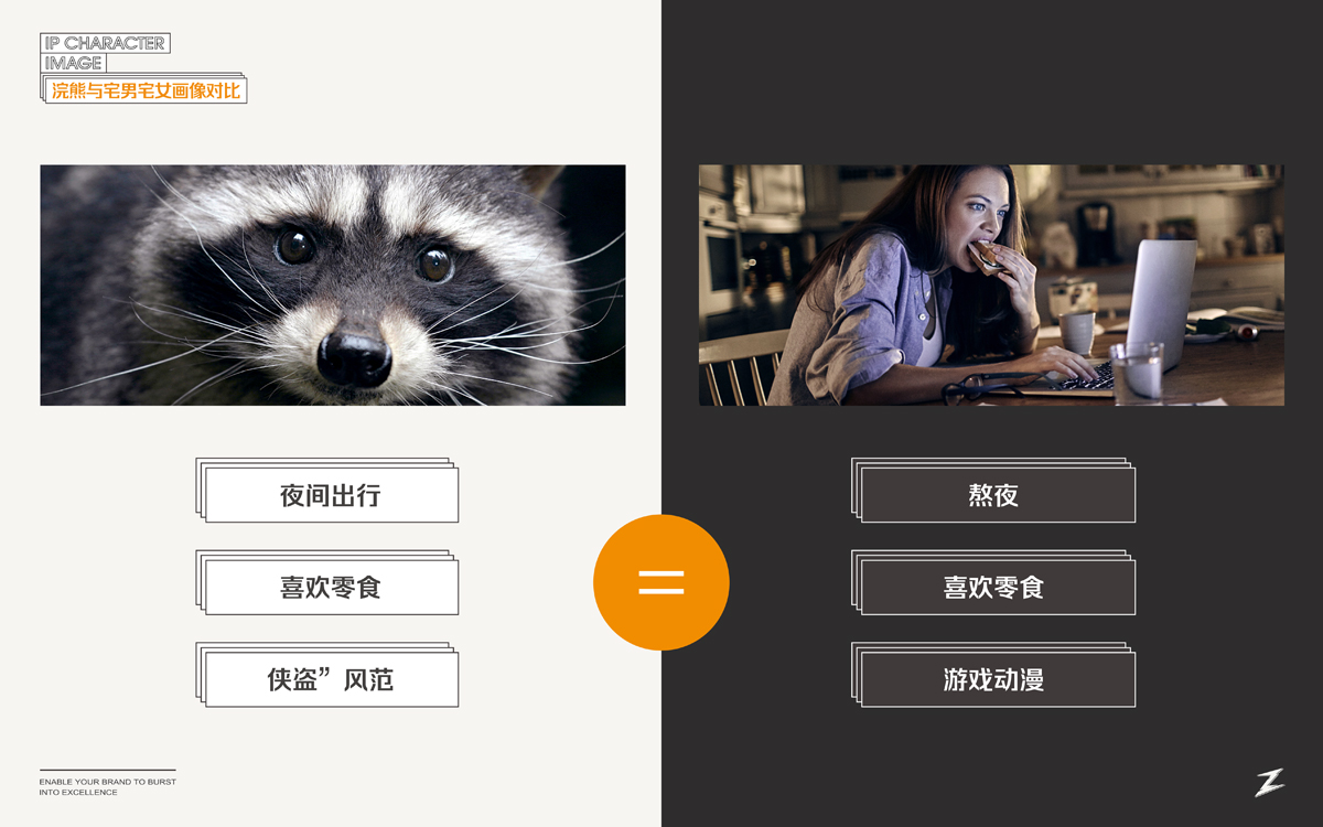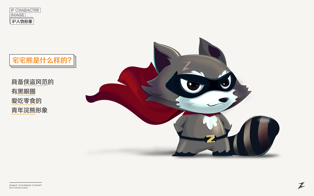 宅宅熊,在于一個(gè)“宅”字。我們通過(guò)精細(xì)化人群定位,以游戲直播、新媒體推廣渠道為主的差異化媒介,塑造了一只玩味、酷帥、俠義的浣熊IP,結(jié)合動(dòng)漫游戲相關(guān)的IP角色植入到系列包裝視覺(jué)中,與目標(biāo)消費(fèi)群形成情感共鳴,成為互聯(lián)網(wǎng)休閑食品市場(chǎng)的新興寵兒。。