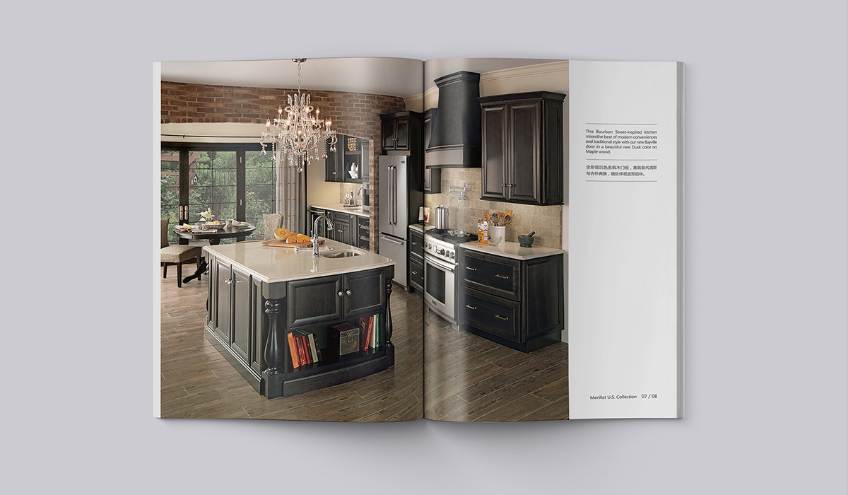 為Merillat美睿廚房打造出符合中國高端市場的國際化形象,品牌涉及研發(fā)、生產(chǎn)、銷售到宣傳所需要的整套系統(tǒng)性的形象建設,正午嚴謹配合各項目具體落地執(zhí)行;在產(chǎn)品畫冊中,涵蓋了空間場景設計、拍攝腳本、產(chǎn)品軟裝、后期3d合成、畫冊設計等全案的策劃與實施。